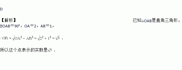 如图,矩形OABC中,OA=2,AB=1,OA在数轴上,以原点O为圆心,对角线OB的长为半径画弧,交正半轴于一点,则此点表示的实数是( )