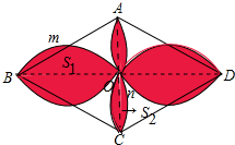 解:如图,连接AC、BD交于点O,记弓形BmO的面积为S1,弓形CnO的面积为S2,则S阴=4(S1+S2).