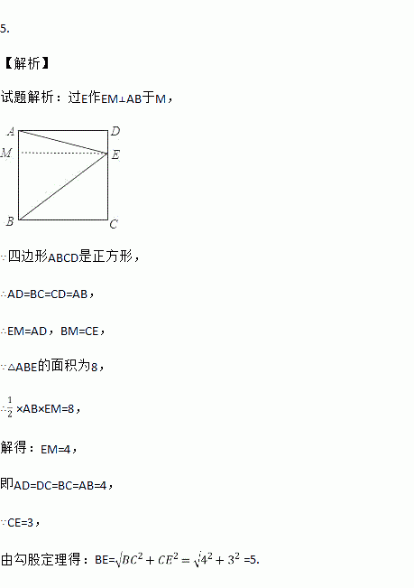 如图,点E在正方形ABCD的边CD上.若△ABE的面积为8,CE=3,则线段BE的长为 .
