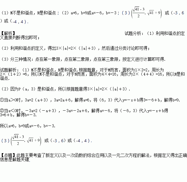 (1)判断点M(1,2), N(4,4)是否为和谐点,并说明理由;