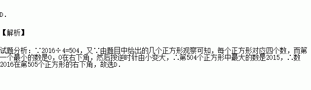 观察图中正方形四个顶点所标的数字规律,可知,数2016应标在( )
