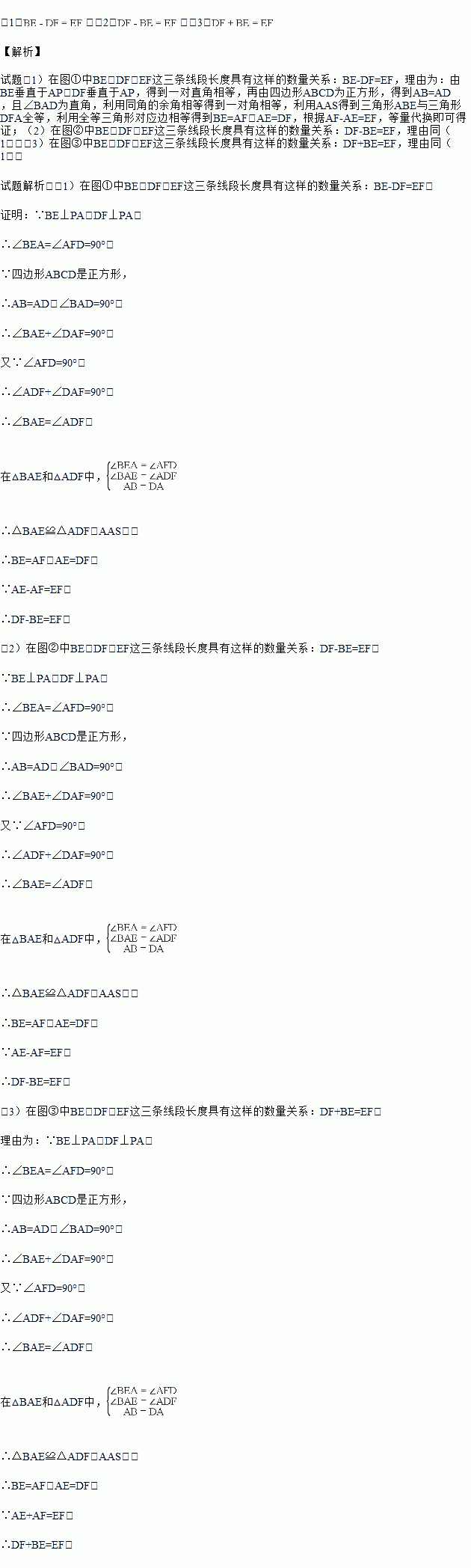 ,请探究BE、DF、EF这三条线段的长度具有怎样的数量关系?![]()