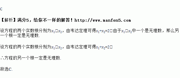 方程x2﹣2x﹣b=0的一个根是无理数,则另一个根一定是( )
