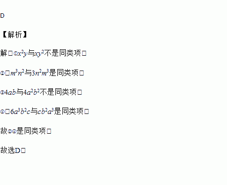 在①x2y与xy2;②﹣m3n2与3n2m3;③4ab与4a2b2;④﹣6a3b2c与cb2a3中,分别是同类项的是( )