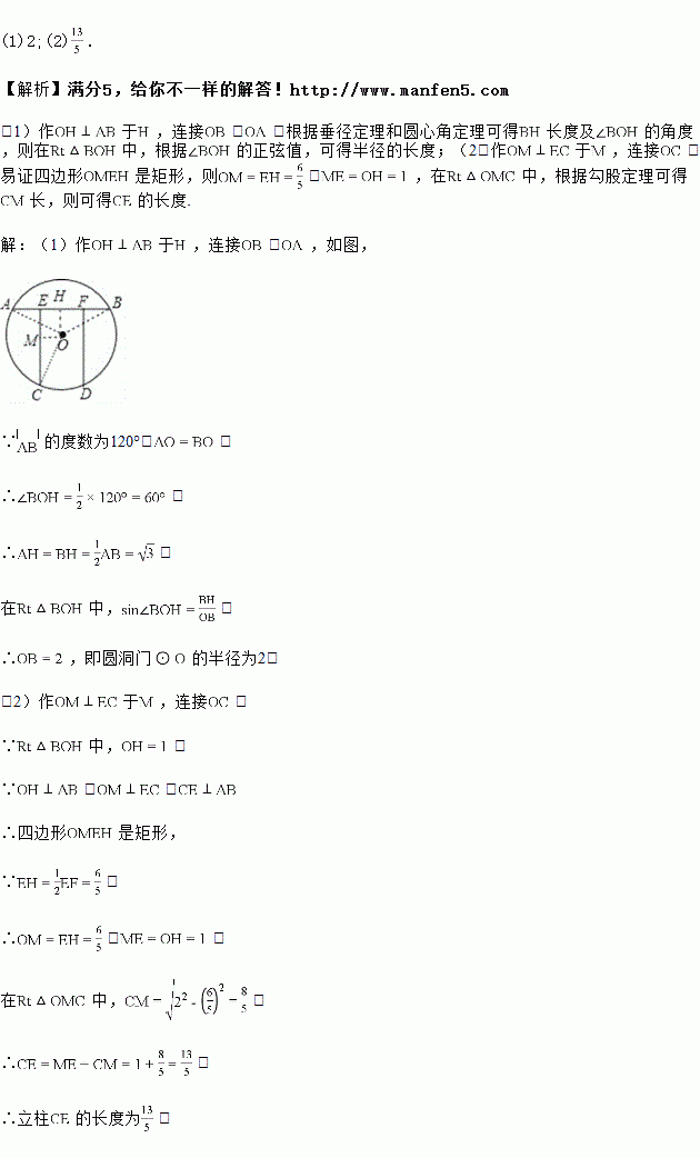 如图,为一圆洞门.工匠在建造过程中需要一根横梁AB和两根对称的立柱CE、DF来支撑,点A、B、C、D在⊙O上,CE⊥AB于E,DF⊥AB于F,且AB=2