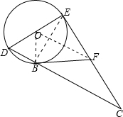 分析:(1)连接OF、OB,通过证明△OBF≌△OEF,得到∠OBF=∠OEF=90°,即OB⊥BF,所以BF是⊙O的切线;