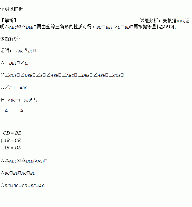 如图,AC∥BE,点D在BC上,AB=DE,∠ABE=∠CDE.