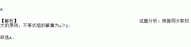 A. x>2 B. x>1 C. 1<x<2 D. 无解