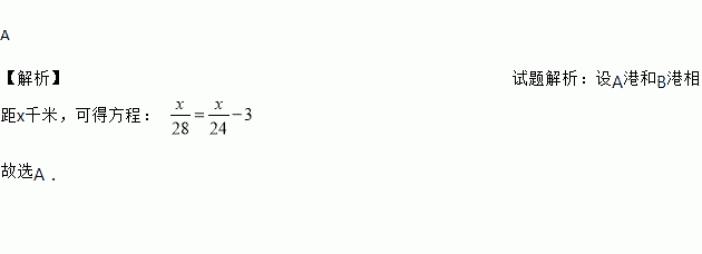 轮船沿江从A港顺流行驶到B港,比从B港返回A港少用3小时,若船速为26千米/时,水速为2千米/时,求A港和B港相距多少千米.设A港和B港相距x千米.根据题意,可列出的方程是( )