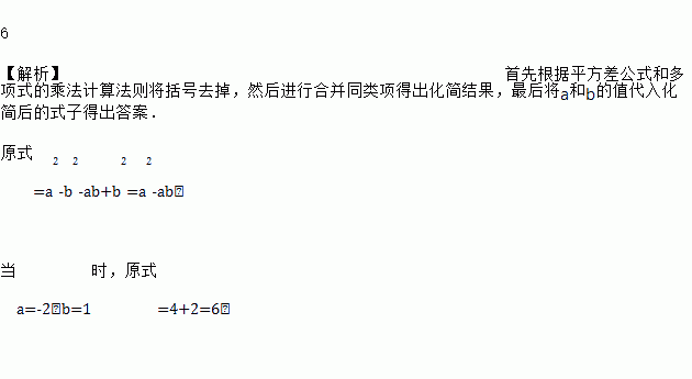 先化简,再求值:(a+b)(a-b)-b(a-b),其中,a=-2,b=1.