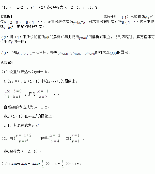 如图,直线AB过x轴上一点A(2,0),且与抛物线y=ax2相交于B、C两点,B点坐标为(1,1).
