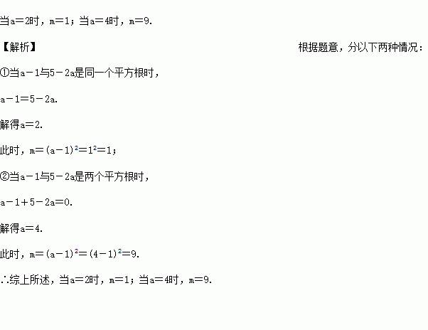 (8分)已知a-1和5-2a都是m的平方根,求a与m的值.