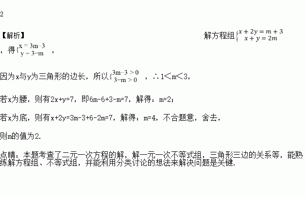 若二元一次方程组的解,的值恰好是一个等腰三角形两边的长, 且这个等腰三角形的周长为7,则的值为____________.