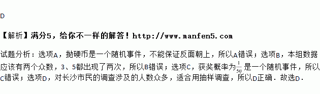 D. 想要了解长沙市民对“全面二孩”政策的看法,宜采用抽样调查