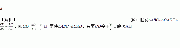 如图,∠ACB=∠ADC=90°,BC=a,AC=b,AB=c,要使△ABC∽△CAD,只要CD等于( )