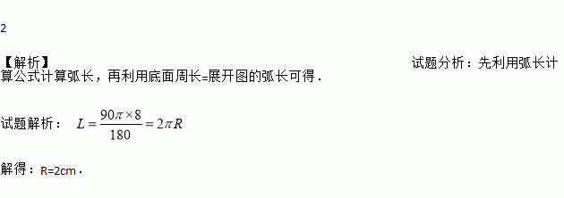如图,现有一圆心角为90°,半径为8cm的扇形纸片,用它恰好围成一个圆锥的侧面(接缝忽略不计),则该圆锥底面圆的半径为 cm.