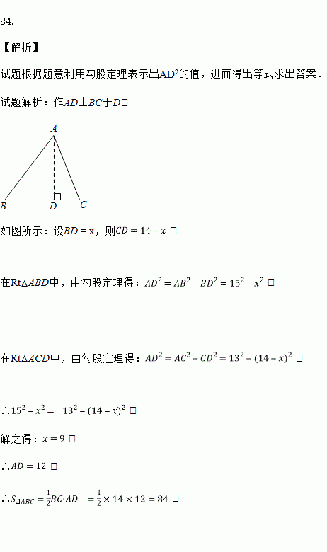 在△ABC中,AB=15,BC=14,AC=13,求△ABC的面积.