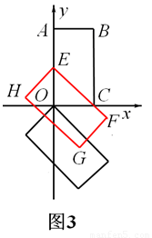 如图3 ,t=OE=OC=2,此时,矩形EFGH沿y轴向上平移过程中边EF经过点C;