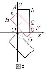 时,矩形EFHG与矩形OABC重叠部分的面积为五边形EQCUV的面积(如图8),