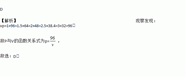 当温度不变时,气球内气体的气压P(单位:kPa)是气体体积V(单位:m3)的函数,下表记录了一组实验数据:P与V的函数关系式可能是( )