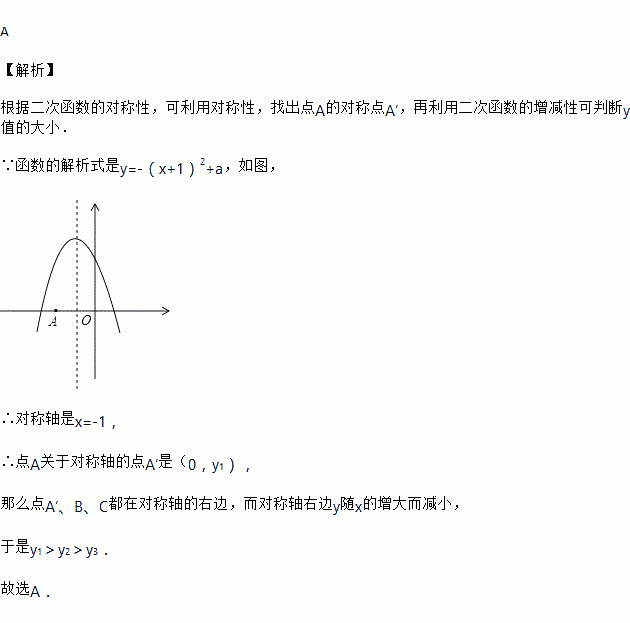 设A(-4,y1),B(-3,y2),C(0,y3)是抛物线y=(x+1)2+a上的三点,则y1,y2,y3的大小关系为( )