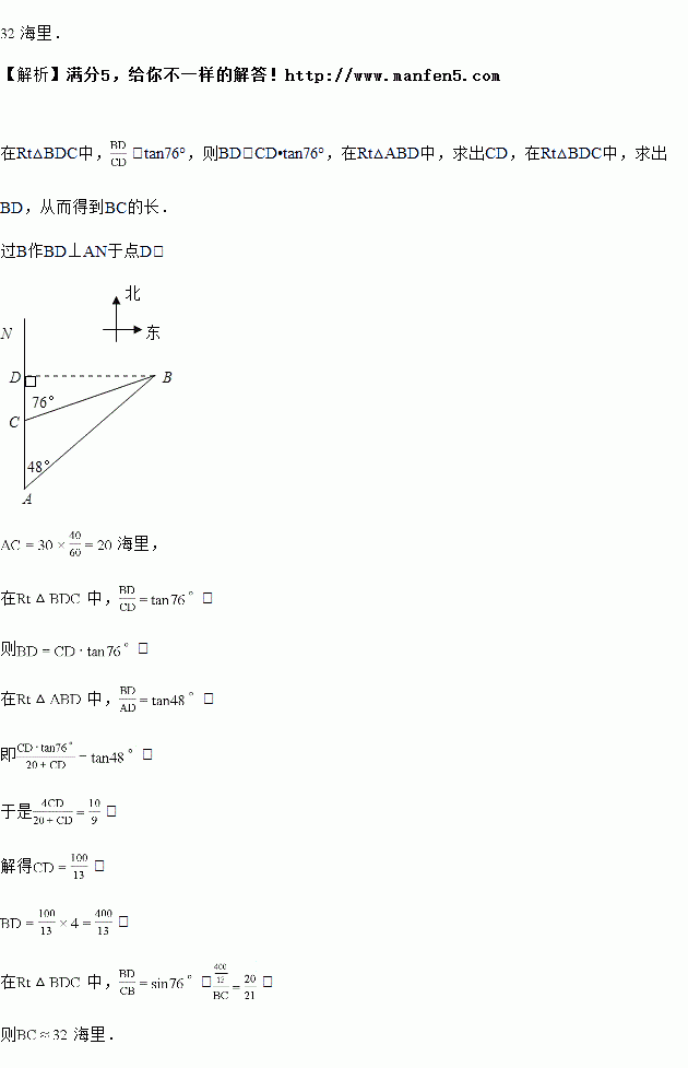 如图,一艘货轮以海里/时的速度在海面上航行,当它行驶到![]()