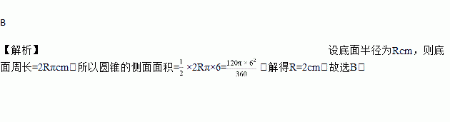 小明想用一个圆心角为120°,半径为6cm的扇形做一个圆锥的侧面(接缝处忽略不计),则做成的圆锥底面半径为( )