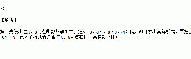 根据“不在同一直线上的三点确定一个圆”,可以判断平面直角坐标系内的三个点A(3,0)、B(0,-4)、C(2,-3) 确定一个圆(填“能”或“不能”)。
