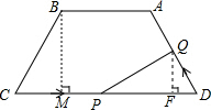 分析:(1)过点B作BM⊥CD于点M,利用等腰梯形ABCD中,AB=4,CD=9,∠C=60°,即可得出CM的长,进而得出BC=AD的长;
