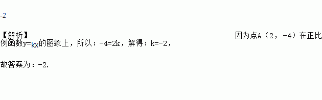 若点A(2,-4)在正比例函数y=kx的图像上,则k=______________.