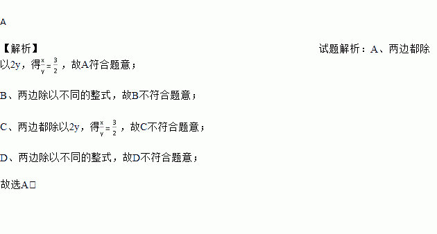 已知2x=3y(y≠0),则下面结论成立的是( )