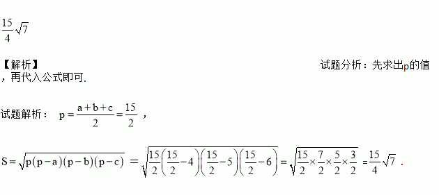 海伦—秦九韶公式:如果一个三角形三边长分别为a,b,c,设,则三角形的面积为,用公式计算下图三角形的面积.