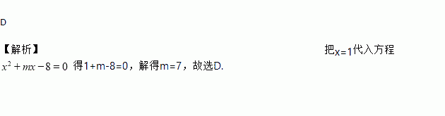 已知关于的一元二次方程的一个根为1,则m的值为( )