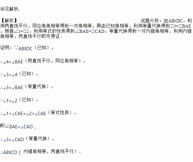 ∵ ∠1 =∠2 (已知)