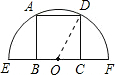 如图,正方形ABCD的顶点A、D在半圆上,BC边在直径EF上,且EF=8,则这个正方形的面积为________.