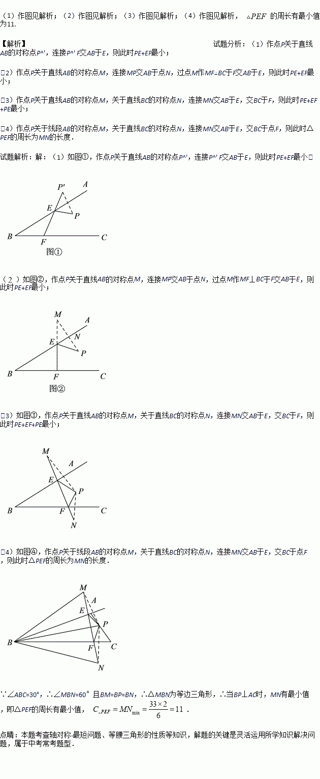 上的三个动点,请在图中作出满足条件的周长最小的