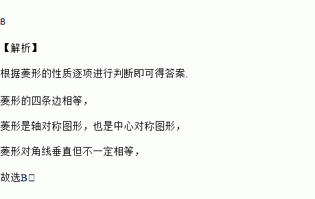 A. 四条边都相等 B. 对角线一定相等 C. 是轴对称图形 D. 是中心对称图形