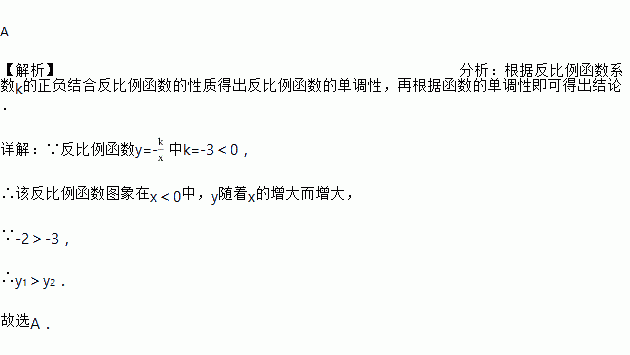 的图象上有(-2,y1),(-3,y2)两点,则y1与y2的大小关系是( )
