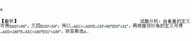 如图,直线AB、CD相交于点E,EF⊥AB于E,若∠CEF=59°,则∠AED的度数为( )