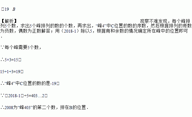 将一列有理数-1,2,-3,4,-5,6,…如图排序,根据图中的排列规律可知,“峰1”中峰顶的位置(C的位置)是有理数4,那么“峰4”中C的位置是有理数________,有理数“2018”应排在A,B,C,D,E中的________位置.