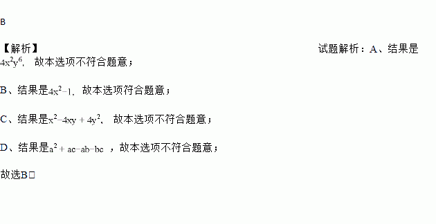 C. (x﹣2y)2=x2﹣2xy+4y2 D. (a﹣b)(a+c)=a2﹣bc