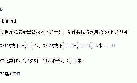 1米长的彩带,第1次剪去,第二次剪去剩下的,如此剪下去,剪7次后剩下的彩带长(不计损耗)为( )