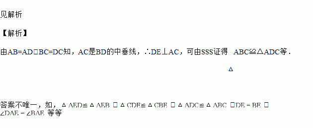 如图,已知AB=AD,BC=DC,AC、BD相交于点E,由这些条件写出4个你认为正确的结论(不再添辅助线,不再标注其它字母).