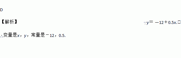 A. 变量是x,常量是12,0.5 B. 变量是x,常量是-12,0.5