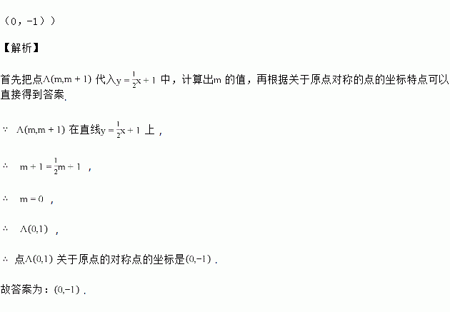 已知点A(m,m+1)在直线y=x+1上,则点A关于原点的对称点的坐标是____.