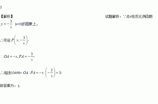 反比例函数(x<0)如图所示,则矩形OAPB的面积是_______.