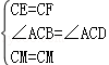 已知:如图,在菱形ABCD中,F为边BC的中点,DF与对角线AC交于点M,过M作ME⊥CD于点E,∠1=∠2.