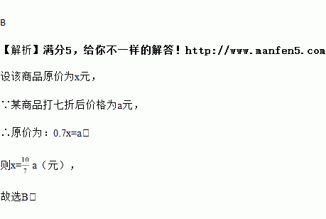 某商品打七折后价格为a元,则原价为( )
