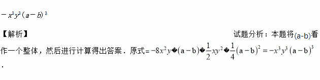 计算:-8x2y·(a-b)·xy2·(b-a)2=____________.