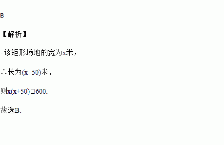 某校早规划设计时,准备在教学楼与综合楼之间,设置一块面积为600平方米的矩形场地作为学校传统文化建设园地,并且长比宽多50米,设该场地的宽为x米,根据题意,可列方程为( )
